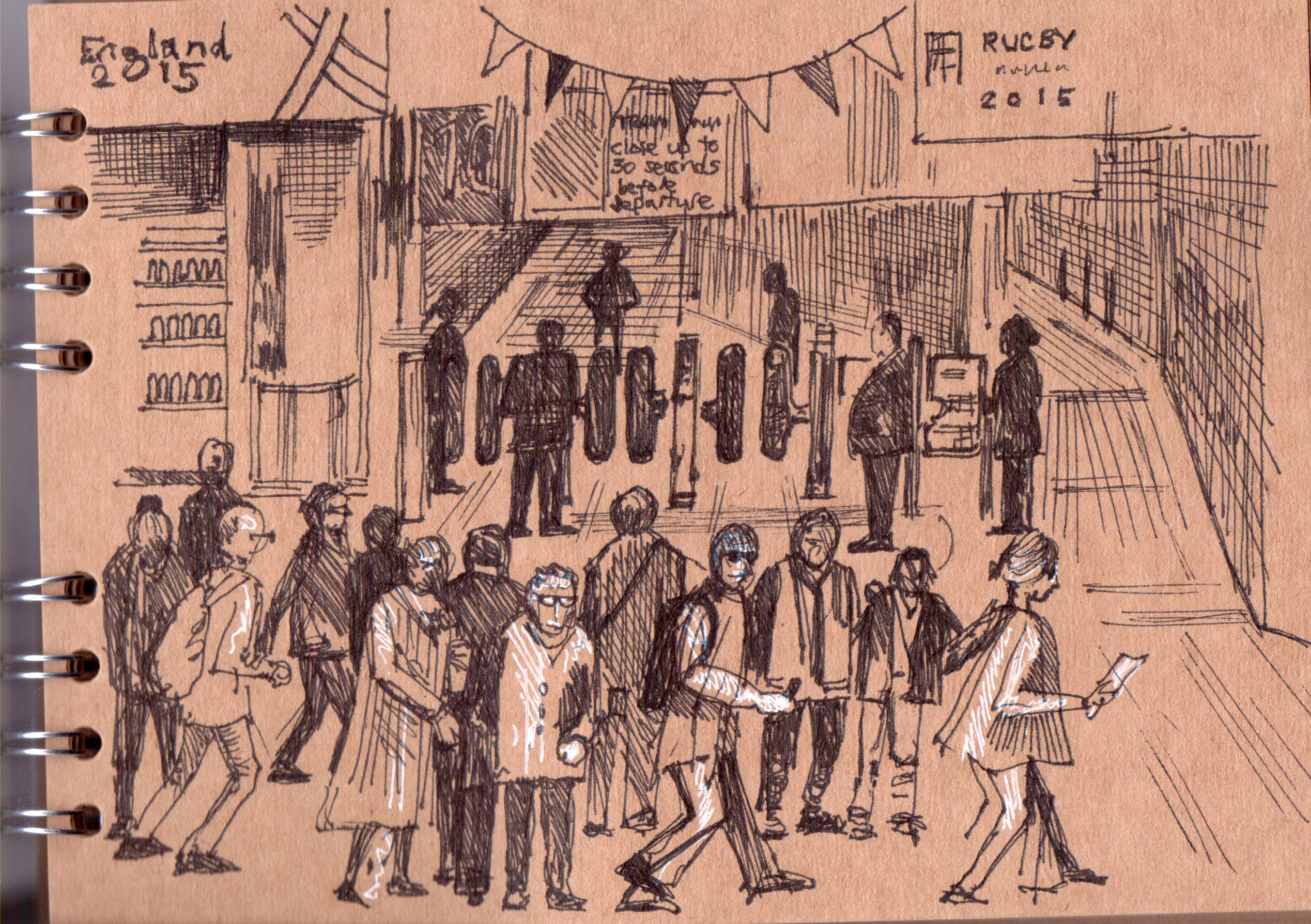 A sample of drawings made at Liverpool Street Station showing the general flow of people and details of more contained narratives.